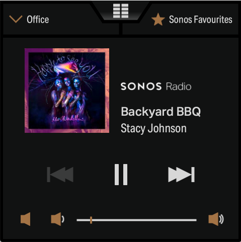 - Seskupené zóny a hlasitost (Grouped Zones & Volume): Pokud existují seskupené zóny, zobrazí se vnořené pod hlavní (Master) skupinou. Ovládání hlasitosti v rámci hlavní skupiny bude ovládat hlasitost skupiny; ovládání hlasitosti v rámci vnořených zón bude ovládat jednotlivé zóny. Doporučuje se ovládat všechny aspekty kromě hlasitosti jednotlivých zón z hlavní skupiny.
