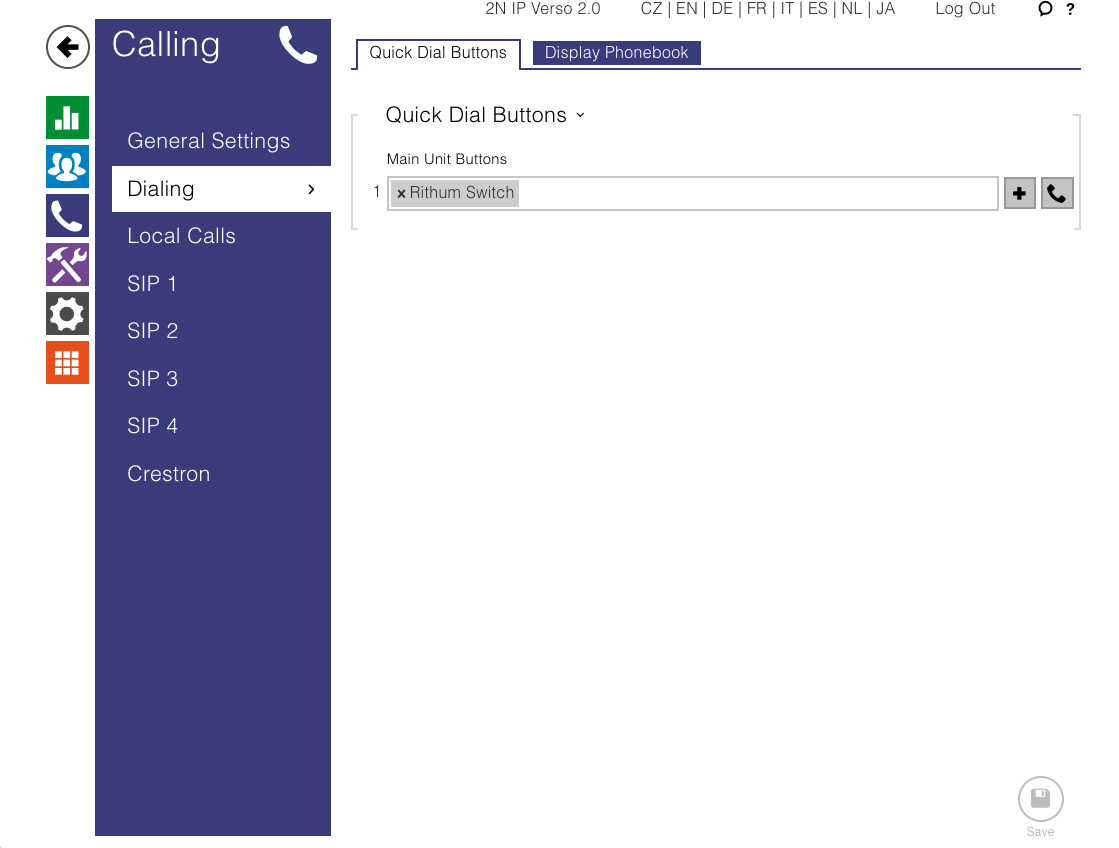 Aby bylo možné uskutečnit hovor z 2N interkomu na Rithum Switch Pro, je třeba 2N nakonfigurovat tak, aby uskutečnilo P2P SIP hovor.