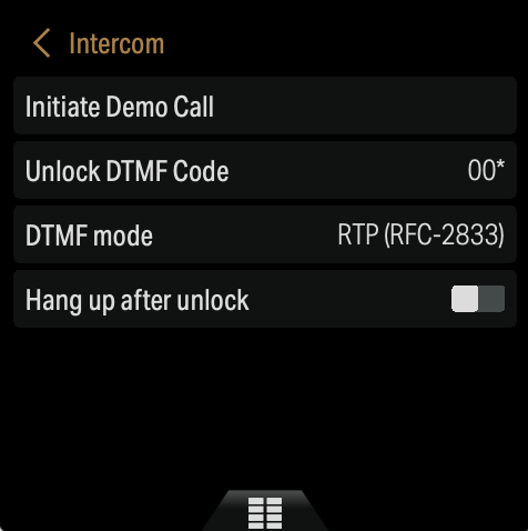 - 'Unlock DTMF Code' (DTMF kód pro odemknutí): Zadejte DTMF číslice, které se mají odeslat při stisknutí tlačítka pro odemknutí na obrazovce interkomu. Výchozí kód pro 2N je - 00*.